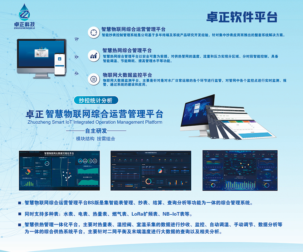 河南卓正電子科技有限公司,專業的物聯網表應用方案提供商,擁有一支多名博士、碩士組成的核心研發團隊,率先將NB-IoT、LoRa遠傳技術、智能閥控技術應用于水務、熱力、燃氣、農業、消防、環境領域,以“領航智能儀表 構建智慧城市”為企業使命,立志成為中國智能儀表行業領域中的領跑者,為推動中國能源計量事業的發展貢獻自己的力量!